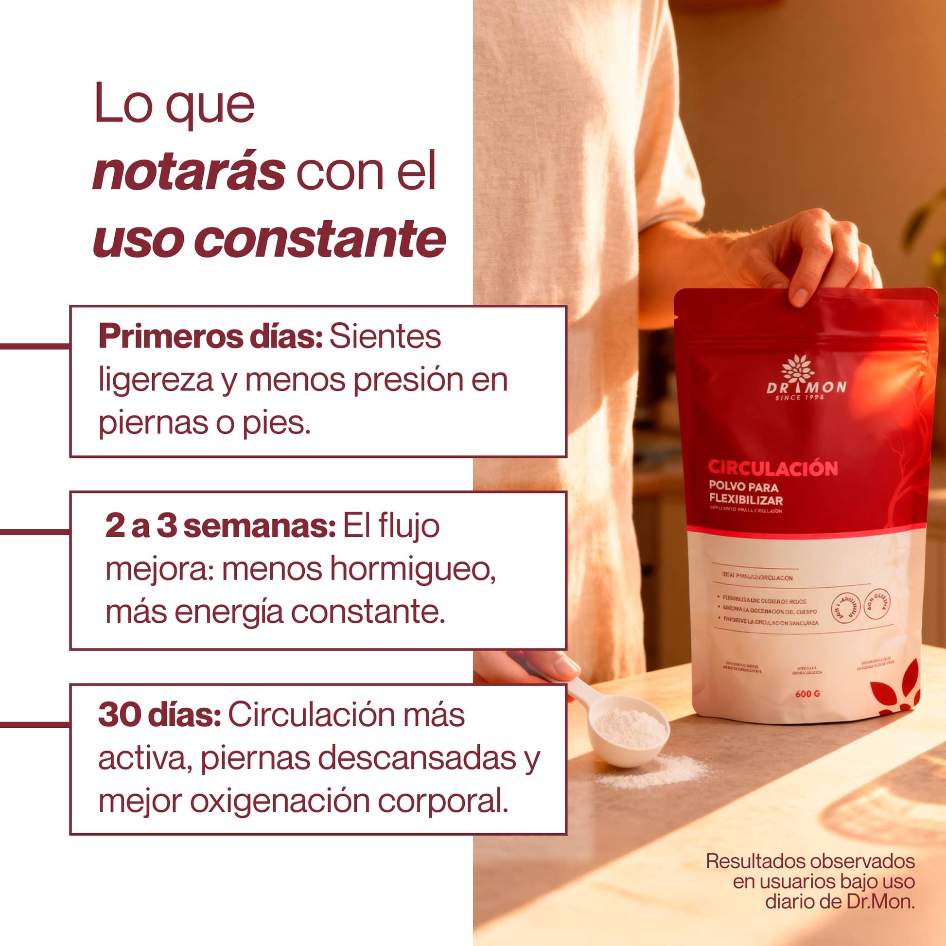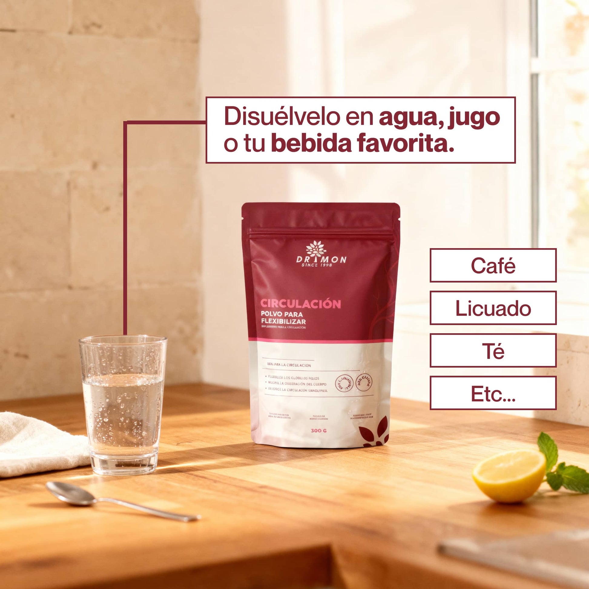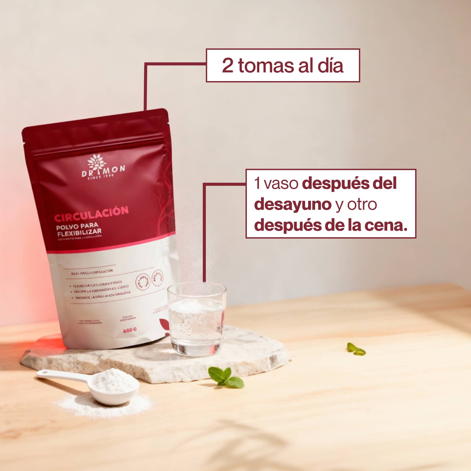 Solo lo tomas dos veces al día. Su acción ayuda a mejorar la circulación, la energía y la oxigenación, impulsando una mejor calidad de vida desde adentro.